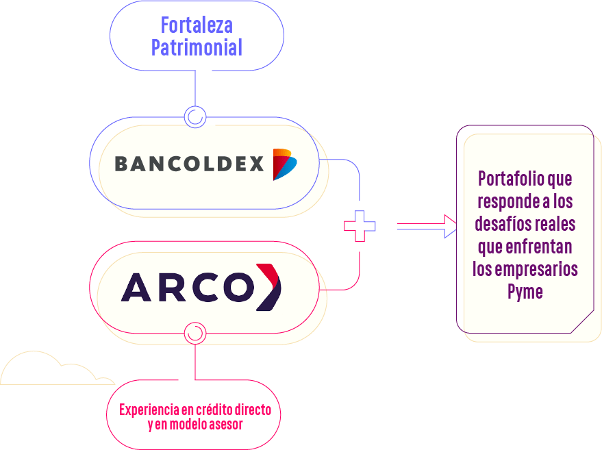 Bancóldex evoluciona para estar más cerca a los empresarios. La fusión, fortalece y amplía su alcance para atender de manera directa las necesidades de las pymes. Los clientes podrán acceder a productos financieros en condiciones más favorables, atención personalizada en el territorio nacional, acceso a programas de formación, consultoría y asistencia técnica, para mejorar las competencias empresariales que fortalezcan la toma de decisiones. De igual forma, los clientes contarán con el respaldo y la solidez del banco de desarrollo empresarial de Colombia, entidad que cuenta con cerca de 30 años de trayectoria en la financiación de las empresas colombianas; y más de 25 años de experiencia, conocimiento, infraestructura operativa y red con la que cuenta ARCO.