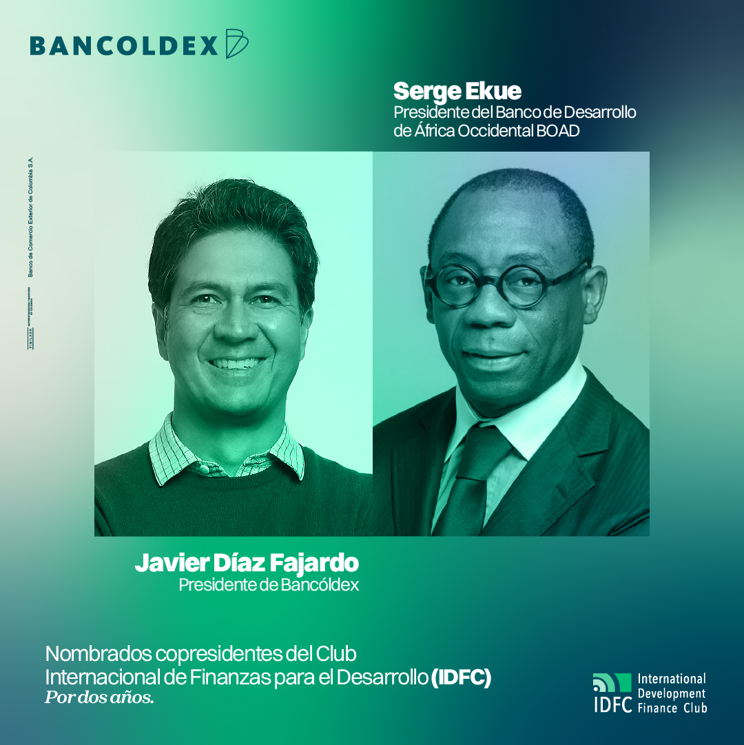 En la reunión anual del Club Internacional de Finanzas para el Desarrollo (IDFC), que se llevó a cabo el pasado 15 de octubre en Marrakech, Marruecos, Javier Díaz Fajardo, presidente de Bancóldex, y Serge Ekue, presidente del BOAD Banco de Desarrollo de África Occidental, fueron nombrados copresidentes del Club por un período de dos años.