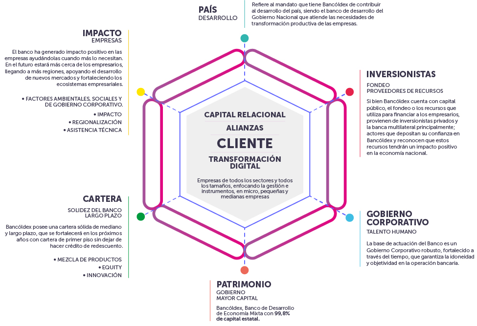 Como banco de desarrollo empresarial de Colombia, Bancóldex contribuye a mejorar la productividad de las empresas con énfasis en las mipymes, apoya el desarrollo sostenible y la internacionalización de las empresas, actuando como instrumento de política pública.